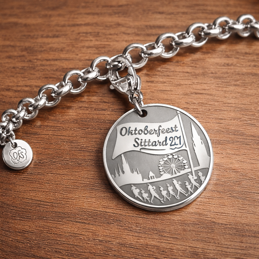 De zwaaiende vlag verwijst naar het samenzijn en de verbroedering waar het Oktoberfeest om bekend staat! Een moment waarop muziek, traditie en gemeenschap samenkomen.